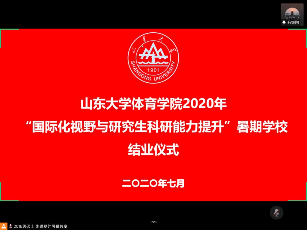 7月18日,我院举办的2020年“国际化视野与研究生科研能力提升”暑期学校落下帷幕。本次暑期学校邀请了12位国内外知名专家学者,围绕科研方法论、管理科学与系统工程、学校体育、健康体育、运动认知、科研期刊投稿、研究生培养、学术素养、优秀校友留美经历分享等专题,开展了广泛而深入的学习研讨,旨在进一步提升我校体育学研究生的科研水平,不断拓宽研究视野。