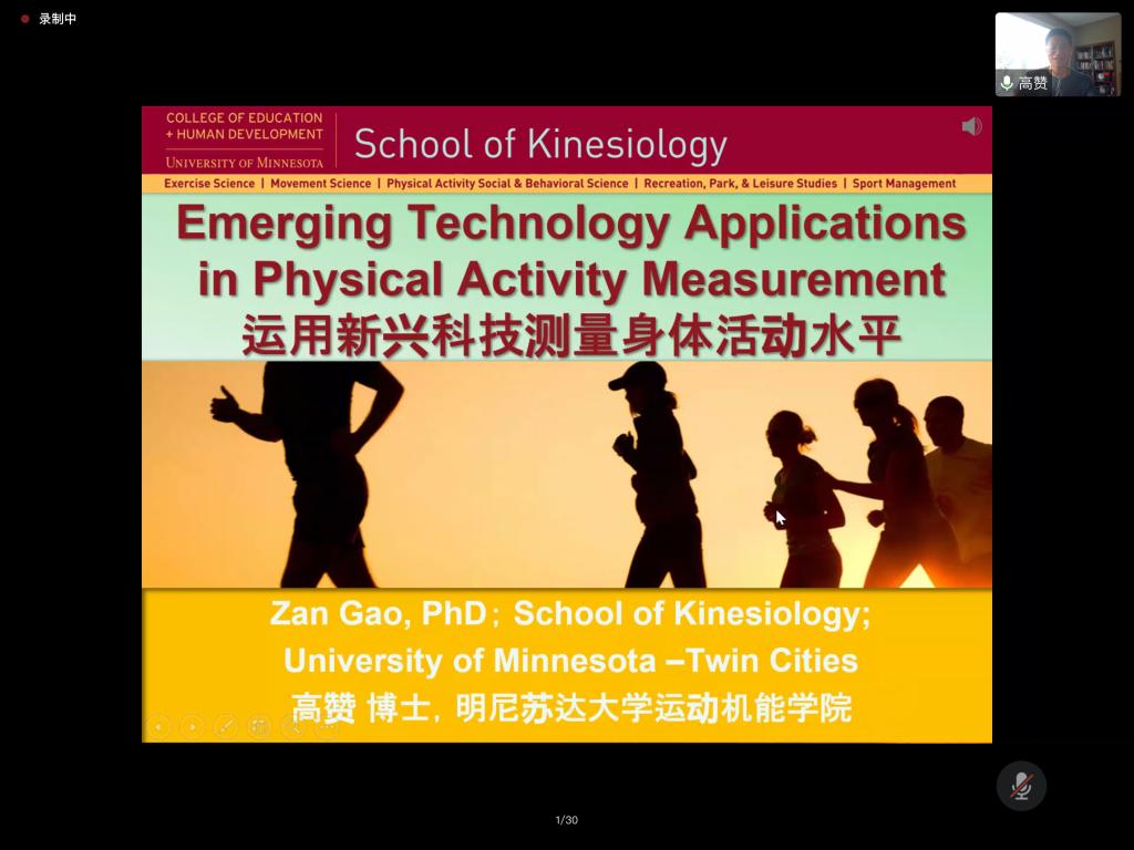 17日上午,美国明尼苏达大学运动流行病学实验室主任高赞教授作了题为《运用新兴科技测量身体活动水平》的主题讲座。讲座伊始,高教授由身体活动的概念界定导入,与学员们探讨了中英文中诸如体力活动、体适能、身体素质等重要名词的互译问题,理清了各体力活动现象之间的关系。在身体活动测量工具部分,高赞教授主要从身体活动水平测量仪器是什么,分类有哪些等方面进行讲解,重点向学员们介绍了计步器、加速度计、心率监控器等几个重要运动测量仪器的结构、使用方法及各自优劣,并通过研究案例向学员们展示了身体活动测量工具在科学研究中的实际运用。随后,高赞教授介绍了当前新兴身体活动测量工具的市场现状、产品类型、品牌厂家等,并对测量工具精确度问题进行了探讨。最后,高赞教授对当前及未来一段时间新兴身体活动测量工具的应用前景进行了展望,认为随着时代发展,身体活动测量工具的开发与运用也愈加科学、准确、精密,并科学客观地进行包含体育运动在内的身体活动研究提供了技术保障。