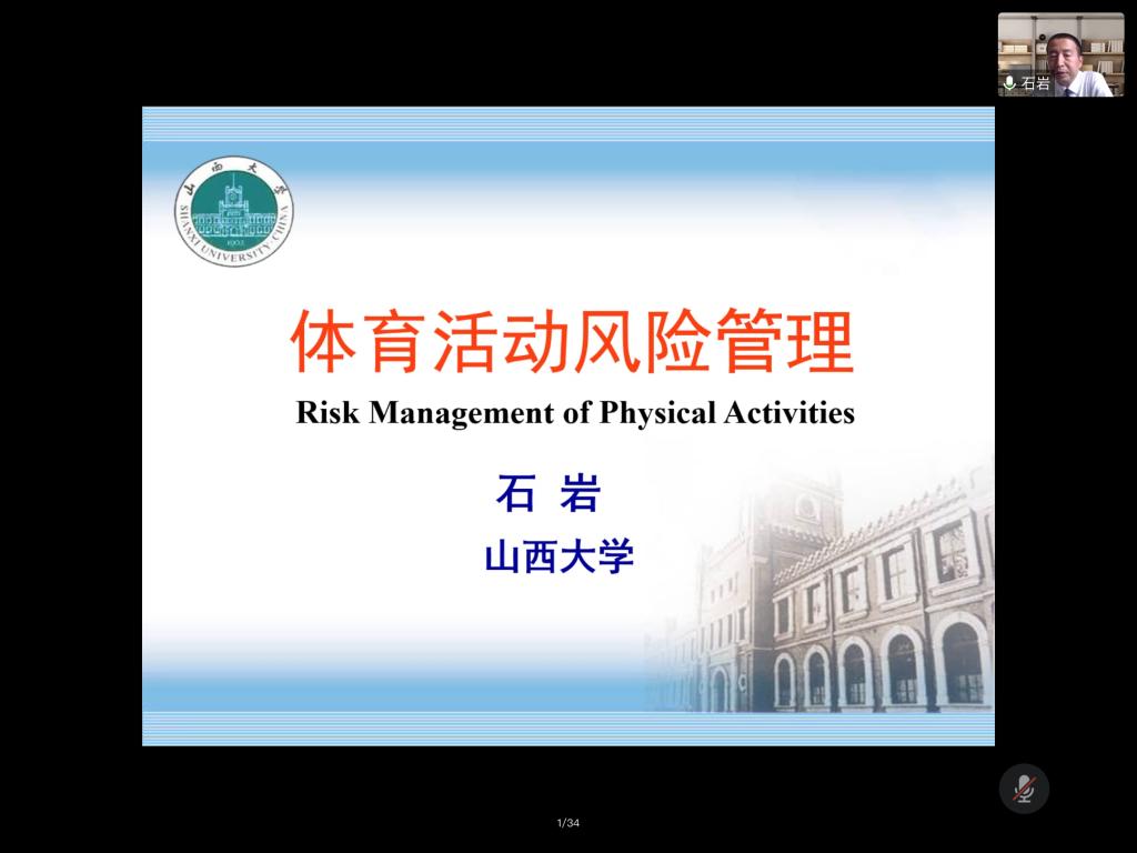 13日下午,山西大学初民学院院长石岩教授作了题为《体育活动风险管理》的学术讲座。石教授首先向学员们呈现了此次讲座内容的框架,提出将从体育活动风险事故案例与体育活动风险管理程序两方面内容进行阐述。为使学员更好的理解与认识体育活动风险以及管理的必要性,石教授首先从体育活动与健康的关系谈起,逻辑严谨地推进到运动环境风险、个体体育活动风险、场地设施风险等主要体育活动风险形式,并通过典型案例和数据进行了论证。随后,他聚焦于体育活动风险管理的具体实施,石教授提出风险管理的三步范式——风险识别、风险评估、风险应对,分别阐述了各步骤的目的、任务与主要内容,并通过案例分析的形式帮助学员们进行理解,介绍了风险识别量表、风险评估量表的使用,同时通过对过往体育活动风险相关研究进行介绍,讲授了科研方法多样化运用、三角互证的研究思想。