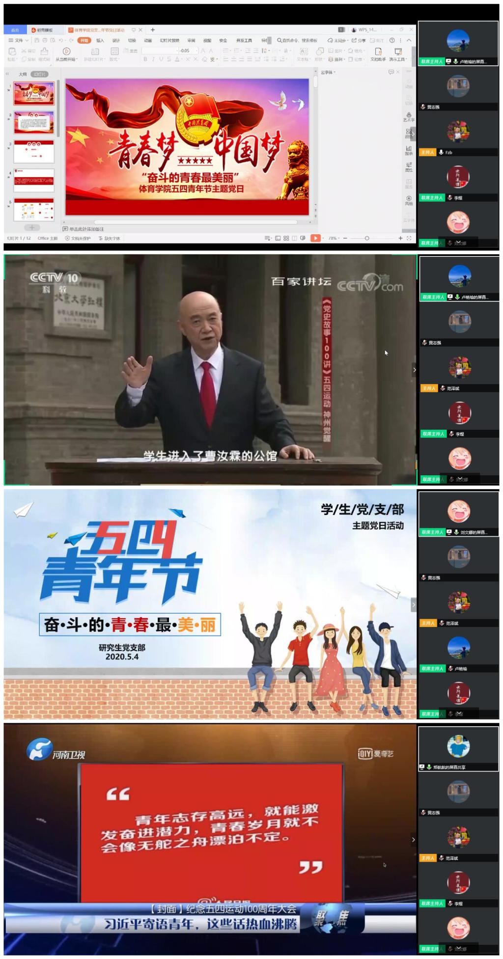 5月4日晚,环球360会员登录研究生党支部、本科生党支部通过视频会议形式开展了以“奋斗的青春最美丽”为五四青年节主题的党日活动。学院专职组织员任若强、党委副书记周庆华以及全体学生党员、发展对象、入党积极分子等60余人参加了此次活动。活动由本科生党支部书记范泽斌主持。