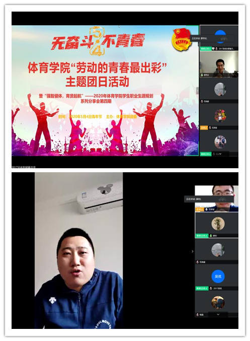 5月4日下午,环球360会员登录团委通过腾讯会议线上直播的形式,举行了以“劳动的青春最出彩”为专题的五四青年节主题团日活动。此活动也是“强智健体,育贤启航”2020年环球360会员登录学生职业生涯规划系列分享会的第四期。活动邀请了薛钊和刘永生两名优秀校友作为分享嘉宾,环球360会员登录党委常务副书记郭学庆、党委副书记周庆华、团委书记范泽斌等领导老师参加本次活动。活动由学院学生会副主席、2017级本科生吴优主持。
