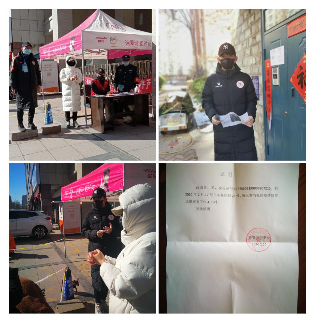 吕田昊是山东大学足球队的高水平运动员,他在大年初三就报了淄博市共青团的抗疫志愿者,随后被安排在他附近的小区进行值班值守,并到每个单元楼粘贴政府发放的通知。