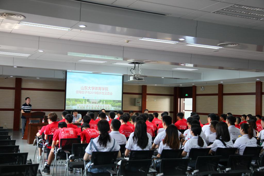 会上,学院领导班子成员分别对新生提出了期望与寄语。孙晋海承诺将尽心尽力的为同学们提供学习保障与服务,并祝愿同学们在山东大学学习期间学习有成,生活愉快。任若强要求同学们作为准体育人,要珍惜新时代,也要珍惜体育人面临的新时代,希望同学们在百年老校多思考、多用心,并预祝同学们学习愉快,学业有成。石振国期望同学们在大学期间要明确“我”是谁,作为山东大学的学子,要引以为豪、付出努力,并愿同学们海阔凭鱼跃,天高任鸟飞。王飞向同学们提出两点建议,关于学业要忘记背后,努力向前;关于处事要做好自己,真实待人。徐剑波期望同学们能够抓住山东大学提供的平台,端正自身态度,做好人生规划。孙传宁则希望同学们能够扎根山东大学,吸收百年底蕴,成为栋梁之才,为国家做贡献。