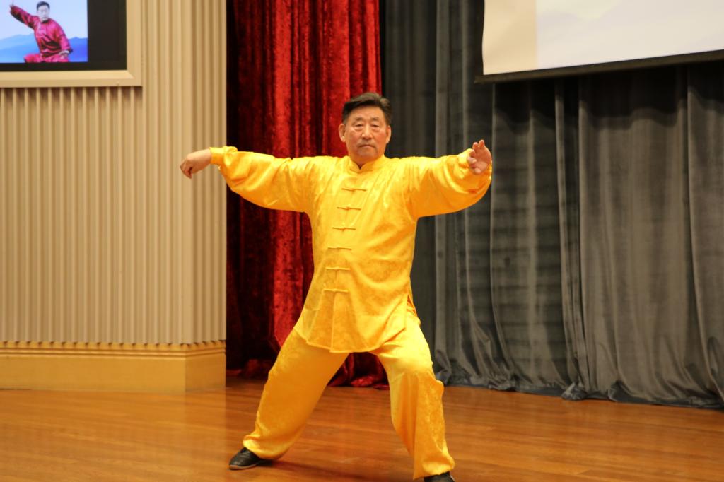 随后,陈小旺作“弘扬太极文化,传承国粹精魂”的主题讲座。他讲述陈氏太极拳的发展及运动体系、习练陈氏太极拳的要点,并用中国的阴阳哲学思想、中医养生等文化与太极文化的关联,让学生能够深入了解陈氏太极拳内在含义。他希望通过在全校师生中普及太极拳运动,了解这项传统文化的博大精深,并以太极拳练习为抓手开展高校健身运动,修身养性,促进高校学生的健康成长。