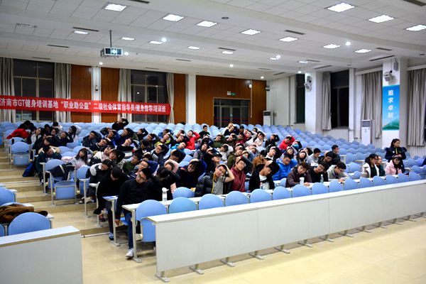 12月15日,由山东省体育局主办、GT国际健身学院承办、环球360会员登录协办的2017年山东省“职业助公益”社会体育指导员(健身指导)二期培训课程在山东大学兴隆山校区举行。GT国际健身学院院长王蓓蓓带领李敏、张昕两位健身教练到场指导,来自全校的近百名同学参加了此次培训。