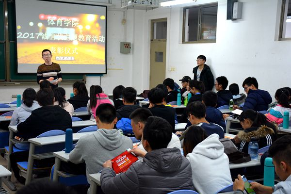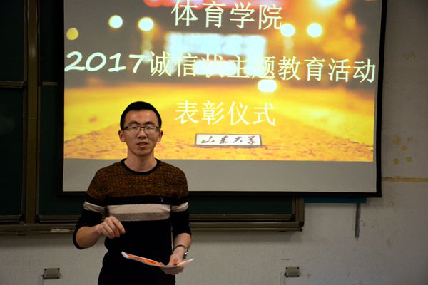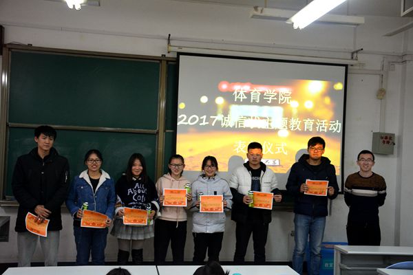 12月21日,环球360会员登录在兴隆山校区举行2017年秋季“诚信状”主题教育活动表彰大会,环球360会员登录团委书记范泽斌出席表彰仪式,并为学院2015级、2016级和2017级社会体育指导与管理专业的54名同学进行表彰。仪式由体育学院学生会自律部部长朱念东主持。