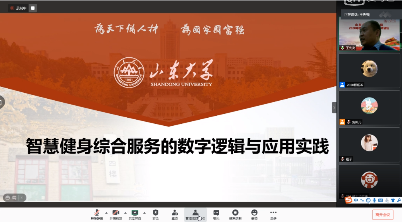 12日上午,由环球360会员登录研究员、博士生导师,世界华人体育管理协会理事,国家体育用品工程技术中心副主任王先亮研究员,为同学们做了题为“智慧健身综合服务的数字逻辑与应用实践”的学术讲座。内容主要从以下几个方面展开:第一,智慧健身快速发展的背景;第二,智慧健身服务体系的构建;第三,智慧健身服务关键命题;第四,智慧健身服务重点创新;最后,王研究员从实际的角度和各位老师、同学们探讨了关于个体智慧化健身服务新模式。