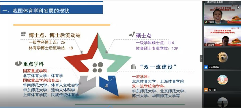 11月11日,2020年度环球360会员登录“博士研究生高端学术讲坛”第三场学术报告顺利举办。苏州大学二级教授、博士生导师王家宏教授应邀做客本次讲坛。通过腾讯会议,王教授作了题为“体育学科的发展与体育科研的趋势”的学术报告。报告由环球360会员登录党委书记、院长孙晋海教授主持。
