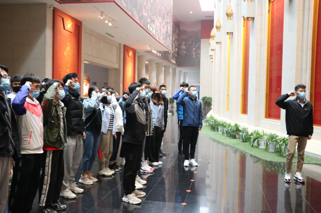 在鲁中抗日战争纪念展览馆,同学们在讲解员的带领下进入展览馆参观。讲解员带领大家了解当年日军对在鲁中国人民犯下滔天罪行,日军杀、伤、抢、掠无恶不作,使中华人民深陷水深火热。中国共产党发动人民群众保家卫国,厉兵秣马,克服千难万险,最终取得抗日战争伟大胜利。同学们深刻领会革命先辈的红色信念,更加珍惜来之不易的和平胜利。在馆内党旗前,同学们庄严宣读入党誓词,在和平的年代秉持入党初心,更加积极向党组织靠拢。