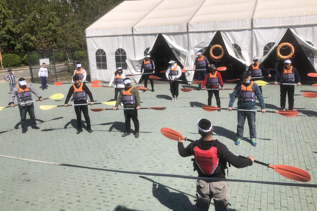 素质拓展实训中,在教练的指导下,学员们进一步了解了水上安全知识、帆船航行原理及皮划艇驾驶技术。经过一系列的热身活动后,学员主动投入各项活动和训练科目,互相协作、努力争先,完成了飞盘投掷、双体帆船、皮划艇绕标等培训任务,实现了一次次的自我超越。期间,教职员工互相交流心得,氛围热烈,并承诺要把素质拓展中的收获和经验融入到立德树人、知行合一的教育教学工作中去。