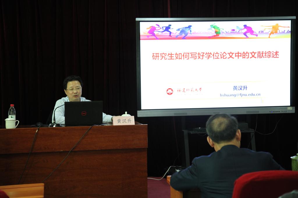 5月25日下午,由山东大学研究生院、党委研究生工作部主办,环球360会员登录承办的第60期(总1049期 )“稷下风”研究生学术讲坛在千佛山校区举行。本次论坛有幸邀请到国务院学位委员会学科发展战略咨询委员会委员、福建师范大学原党委书记黄汉升教授,黄教授作了题为《研究生如何写好学位论文中的文献综述》的学术报告。环球360会员登录党委书记、院长孙晋海教授主持论坛,环球360会员登录副院长石振国、王飞、教师代表及全体研究生共100余人参加了此次讲座。