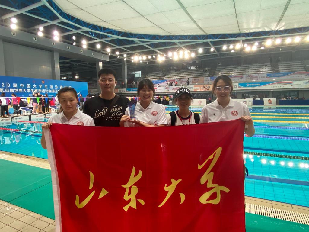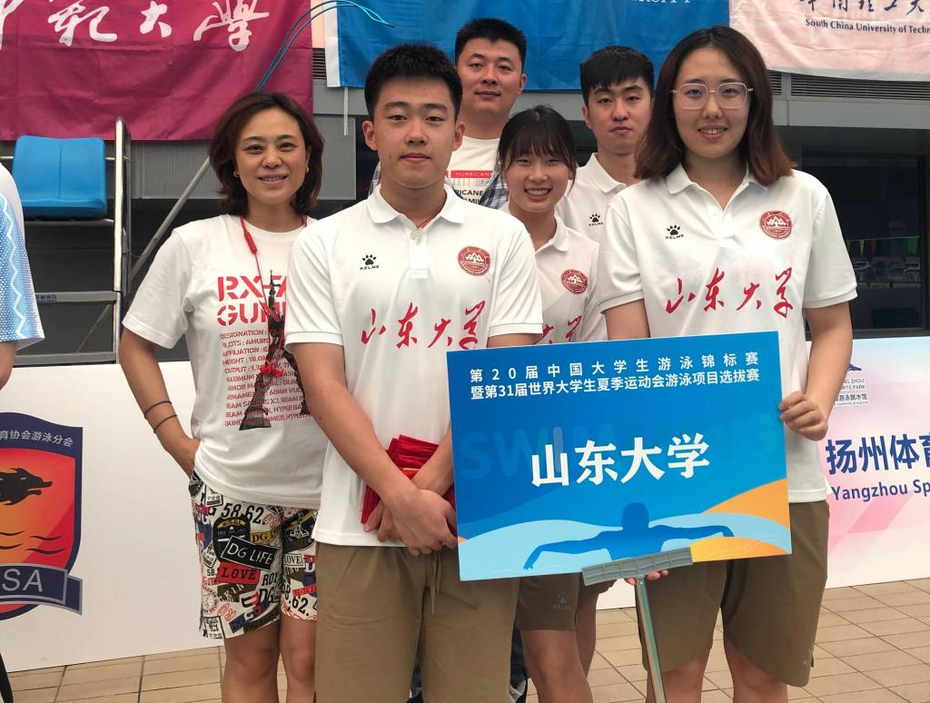 6月4日,第20届中国大学生游泳锦标赛暨第31届世界大学生夏季运动会游泳项目选拔赛在扬州体育公园游泳跳水馆圆满落下帷幕。山东大学游泳队的5名运动员在教练陈巍然、潘洋的带领下,获得4金2银1铜的优异成绩,为我校争得荣誉。