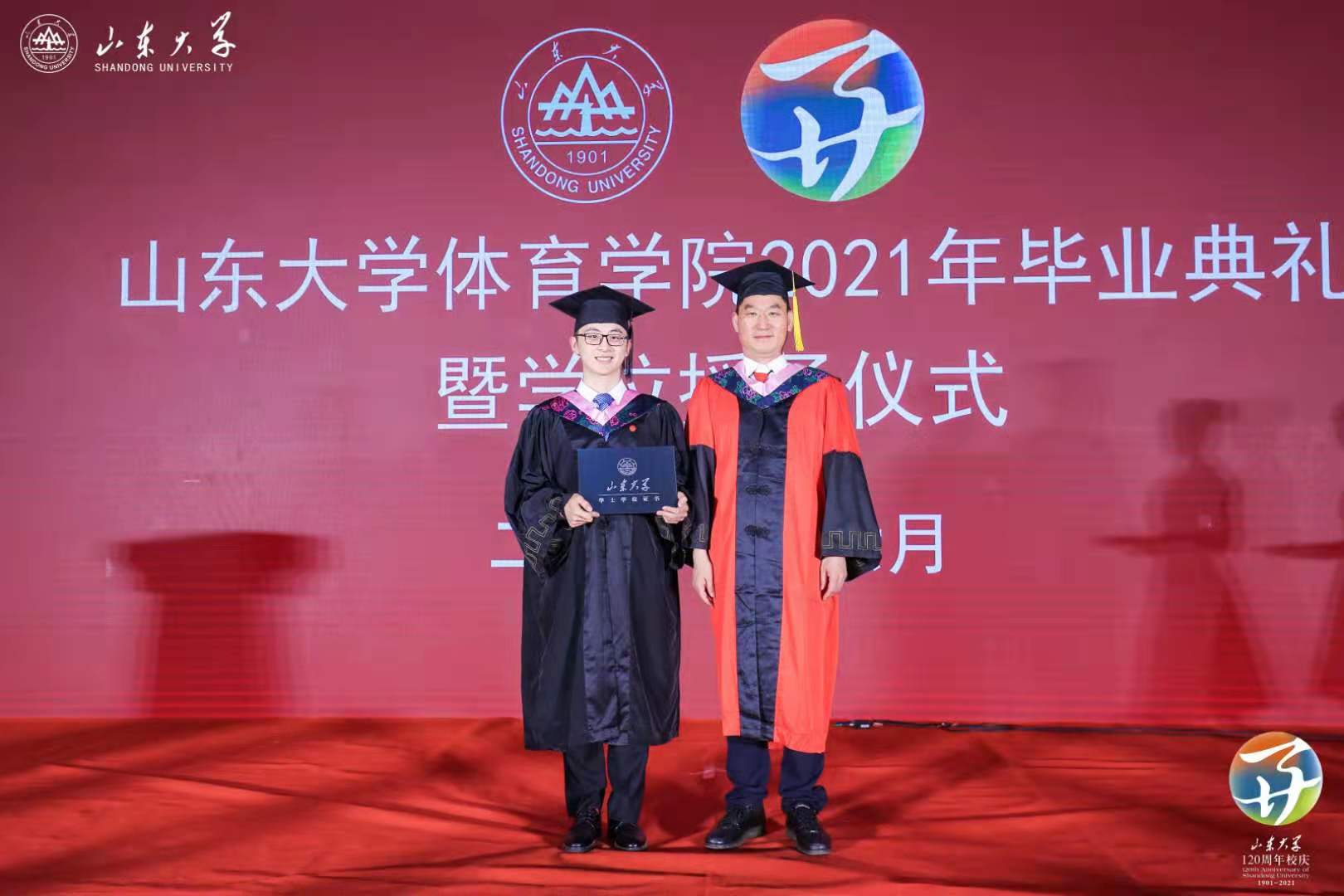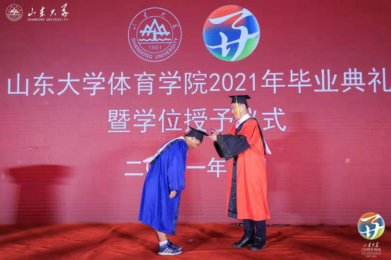 蔡捷同学代表2021届博士毕业生发言,她提到“山大体育,育贤图强”,始终为自己是一名山大体育人而骄傲,必定会将自强不息的精神深深烙进心底,将德才兼备作为做人做事的标准。