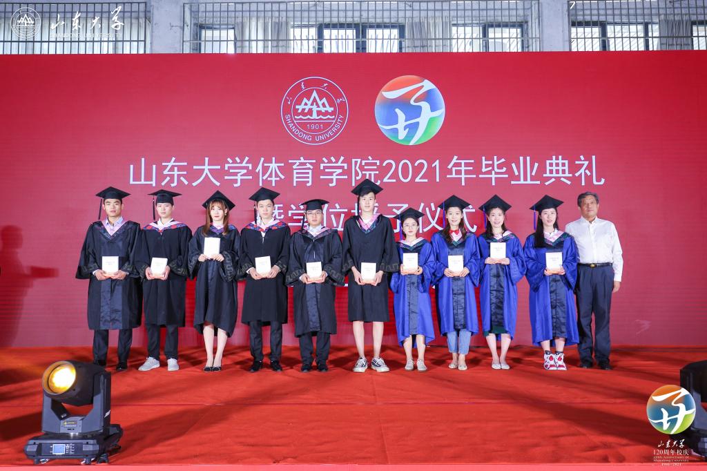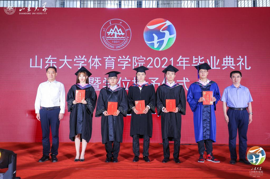 在全场起立高唱中华人民共和国国歌之后,石振国宣读2021届博士、硕士学位授予决定,王飞宣读2021届学士学位授予决定,郭学庆宣读2021届省级、校级优秀毕业生表彰决定。在喜悦激昂的进行曲中,山东省优秀毕业生、山东大学优秀毕业生代表依次上台领取荣誉证书。