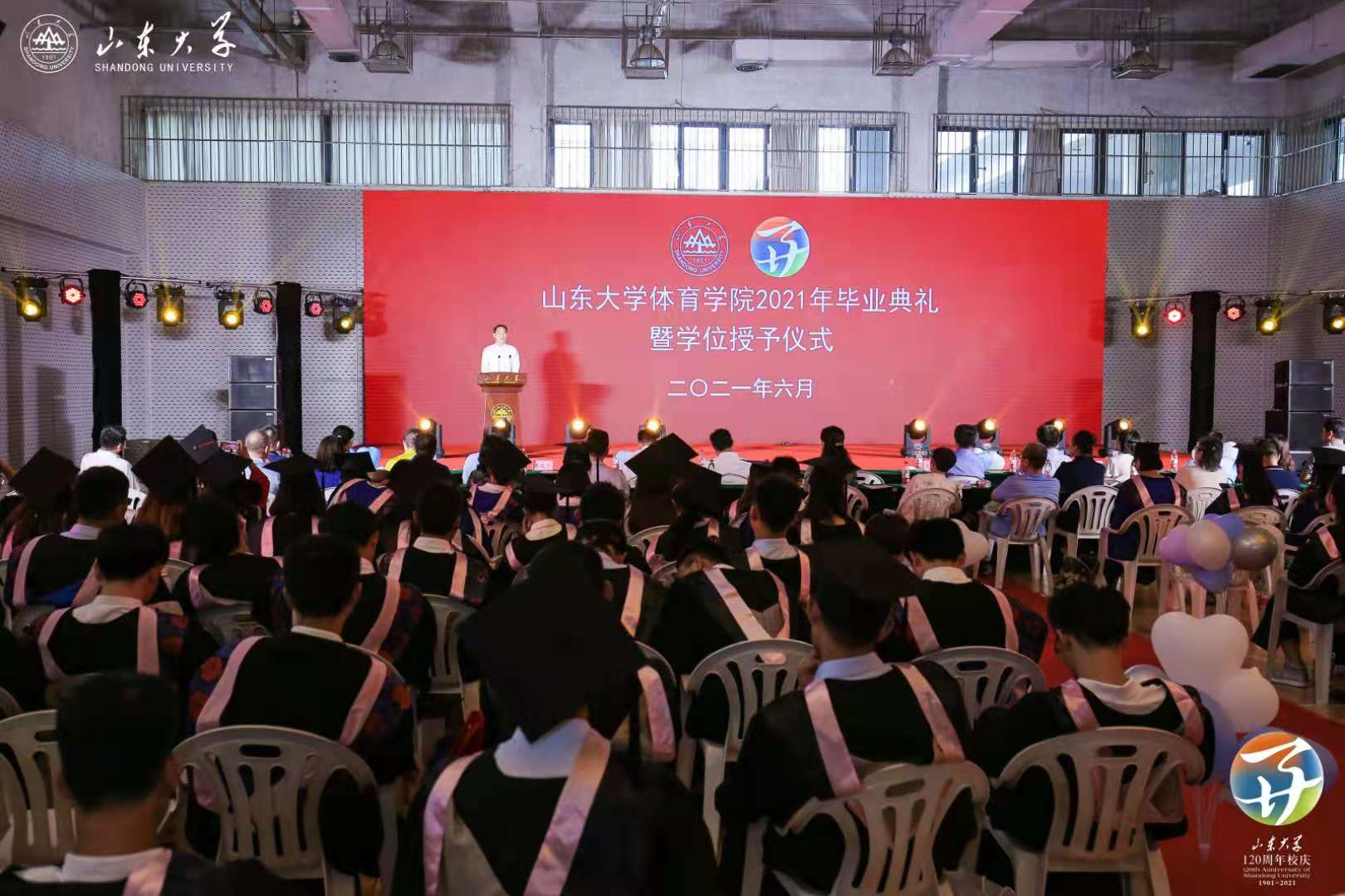 “为天下储人才,为国家图富强”,本科生家长代表吴优的父亲讲到:“位卑未敢忘忧国,这是山大的教学理念和使命担当。今年是中国共产党成立一百周年,青年人意气风发,一往无前,追求着最可珍贵的理想。作为体育人的家长,感到最为自豪。人生海海,行远思恩。祝愿即将走向人生更高处的热血青年们,保持对体育的热爱,奔赴下一场山海。”