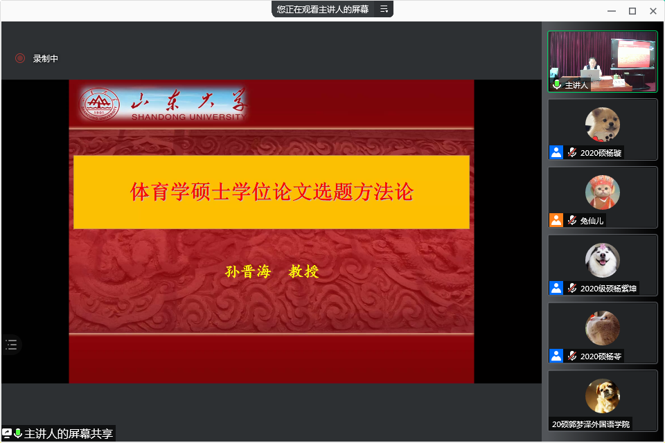 7月9日上午,山东大学环球360会员登录党委书记、院长孙晋海教授分享了以《体育学硕士学位论文选题方法论》为题的学术讲座。他从12篇硕士学位论文选题案例开始,结合个人多年宝贵的科研经验,从选题三要、选题解读、到哪儿选、怎样选题、题目推敲五个方面,以其渊博的学识,独到的见解,展开了一场精彩的报告。在交流互动环节,孙晋海教授耐心细致地回答部分研究生导师及硕士研究生选题方面的问题。