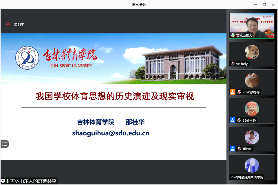 7月17日,吉林环球360会员登录副校长邵桂华教授受邀做客暑期学校,作了题为《我国学校体育思想的历史演进及现实审视》的主题讲座。邵桂华教授对当前中国学校体育思想的发展历程进行了详细的介绍。他首先从中国古代的体育教学思想开始讲起,说道老子的奠基于“道”之上的“自然养生体育”是中国古代体育思想的主要力量。邵教授接着从以政治为中心的体育教学思想、以技术和技能为中心的体育教学思想、以全面发展为中心的体育教学思想和以健康第一为中心的体育教学思想等阶段分别进行了介绍分析。随后,邵教授对中国学校体育思想进行了剖析。他认为,“工具主义”试图以一个确定性的目标和强有力的控制来应对表现出更多不确定性和分叉行为的复杂性体育教学。他提出,要用复杂性的思维和方法来看待和处理呈现出复杂性特点的学校体育教学,需要用系统科学的方法与思路,去建立起自组织的体育教学思想体系。