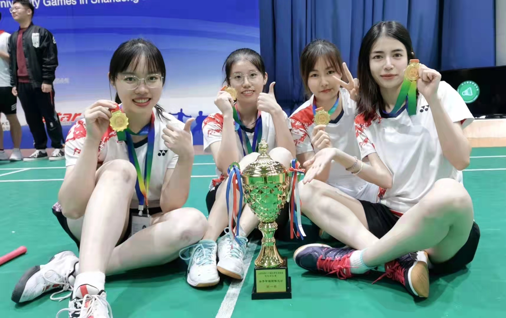 由口腔医学院叶美琳、文学院曾温馨、白逸飞、环球360会员登录郭晨宇组成的甲组女将们发挥出色,一路过关斩将,最终战胜上届冠军中国海洋大学代表队,问鼎冠军,这也是山东大学首个羽毛球女团冠军。