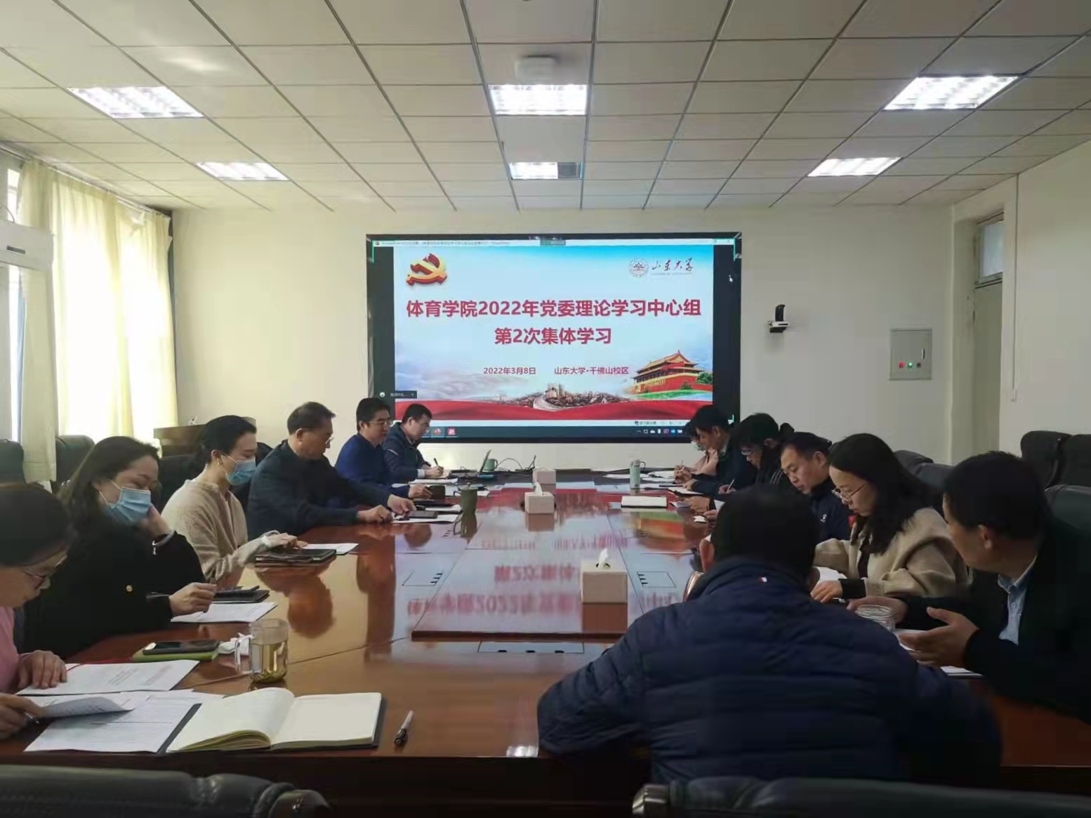 会上,学院党委副书记卢士涌领学了《山东大学2022年工作要点》和《中共山东大学委员会2022年党建工作要点》。党委书记郭学庆传达了学校2022年全面从严治党工作会议暨安全工作专项巡视动员部署会精神,并就本学期相关工作进行了部署。