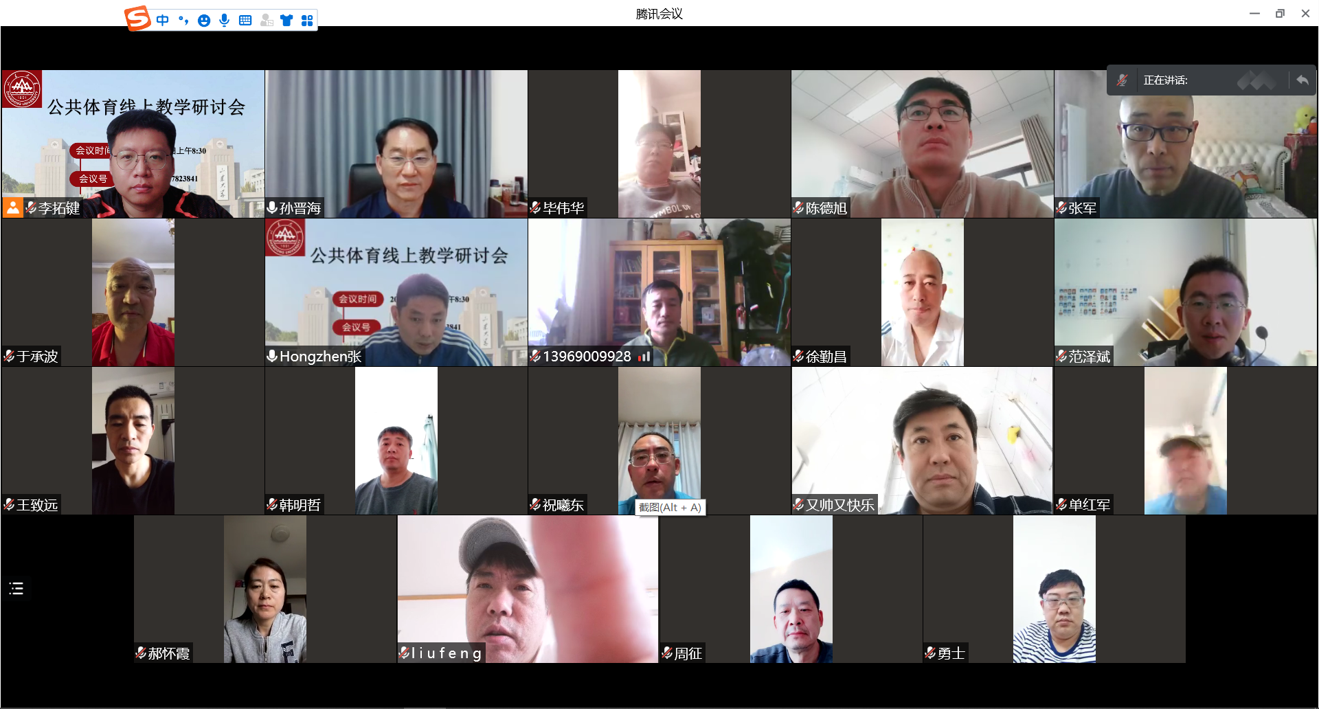 在总结讲话中,院长孙晋海表示,目前公共体育教学工作顺利开展,能够较好地落实学校学校疫情防控和春季学期工作会议本科教学要求。在下一步工作中,应进一步重视线上公共体育课程质量、加强课程内容设计、增强线上课程互动、积极学习先进教法,打造山大精品线上体育课程。同时,应进一步加强课程督导,落实落细“学院领导-教研室主任-教学督导员”联合听课制度,及时发现问题解决问题,推进线上公共体育课程高质量发展。