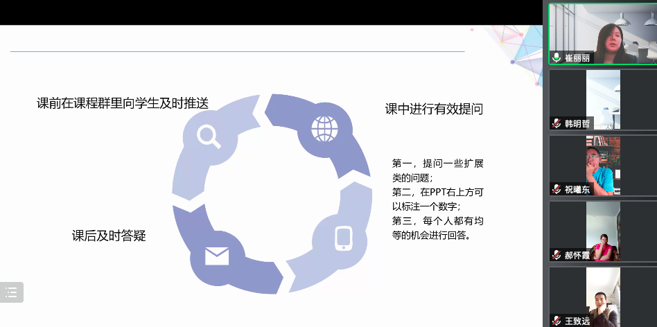 本次线上教学研讨活动为环球360会员登录教师在新形势下改进教学方法、更新教学理念、整合课程资源、探索课程模式提供了交流平台,为今后恢复线下授课后完善线上线下混合教学式教学、建设一流课程、提高教学质量总结了宝贵经验。(文/李拓键)