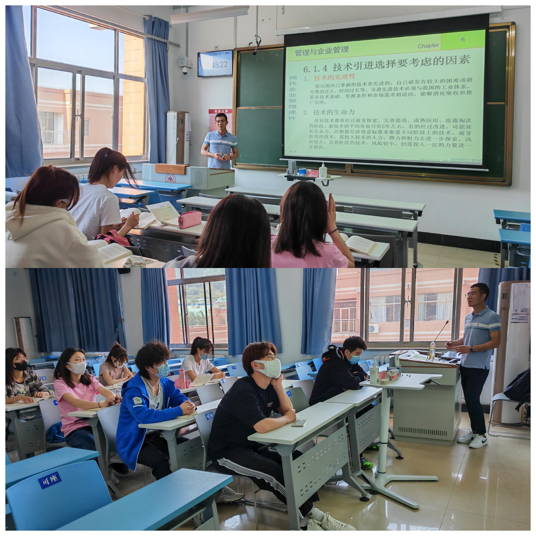 为积极响应落实学校在进入相对封闭管理期内线下授课教学的相关要求,环球360会员登录统一部署,本着应开尽开的原则,于5月17日在兴隆山校区开展2021级管理体班级《企业管理》和2020级社体高班级《运营管理》两门课程的线下教学。