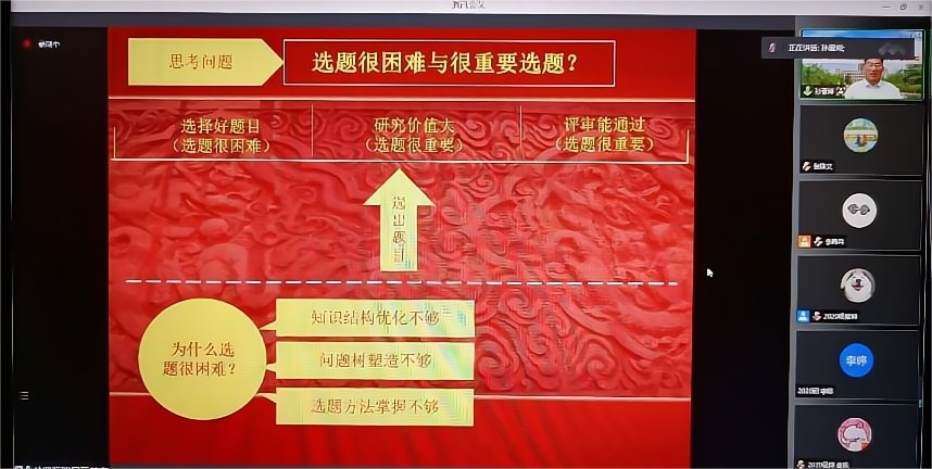开班仪式后,环球360会员登录院长孙晋海教授为暑期学校学员作了题为《体育科研问题选题方法论》的学术讲座。首先,孙晋海抛出问题“选题很重要,但为什么选题很困难?”,孙晋海指出,选择好的题目很困难,但一个好的题目研究价值大、评审易通过。之所以感到选题很困难,主要原因是知识结构优化不够、问题树塑造不够、选题方法掌握不够。接着,孙晋海从选题举例、选题三要、选题解读、到哪儿选、怎样选题、题目推敲六个方面进行详细讲解,分享了选题的思路、方法与技巧。过程中,他结合大量关于小论文的写作、大论文的选题以及国家级项目申请选题的案例,讲解了“问题树”即既要有理论的基础,又要有选题的方法论的结构,同时告诉大家,在选题过程中要做到三要:要创新、要有价值、要能完成。最后,孙晋海强调,“选定题目以后要反复推敲”,不仅要把题目拓宽、拓深,而且还要拓展,还要及时和周边的同学、老师以及学者进行交流,把选题从“精、深、广”的角度进行推敲。