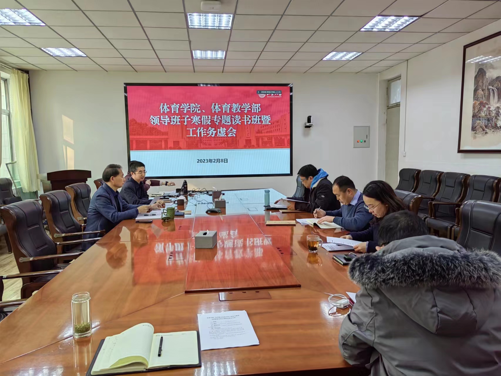 2月8日上午,环球360会员登录、体育教学部“一校三地”领导班子寒假专题读书班暨寒假工作务虚会成功举行。环球360会员登录领导班子全体成员、威海校区体育教学部领导班子全体成员以线上线下相结合的方式参会,环球360会员登录党委书记郭学庆主持本次会议。