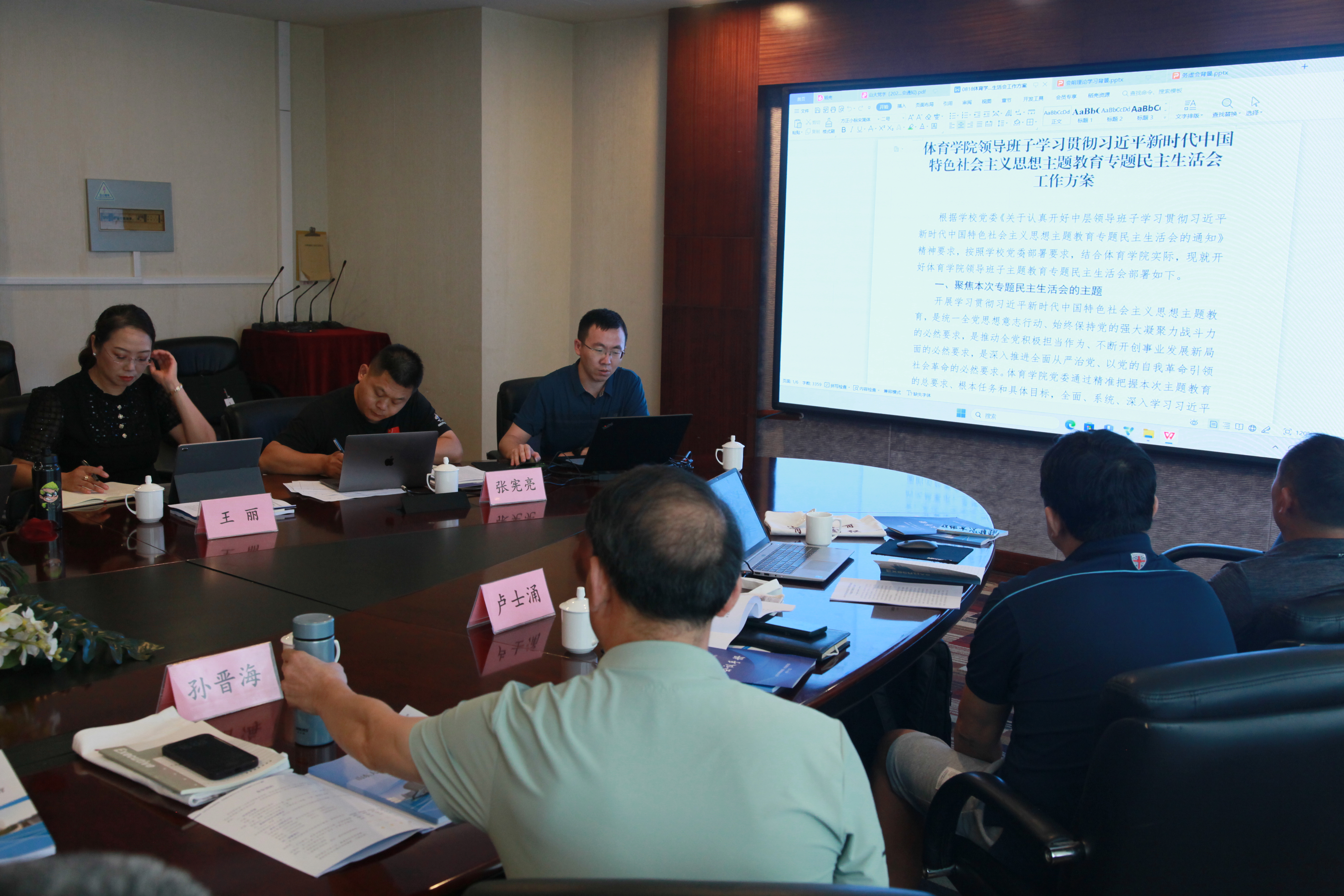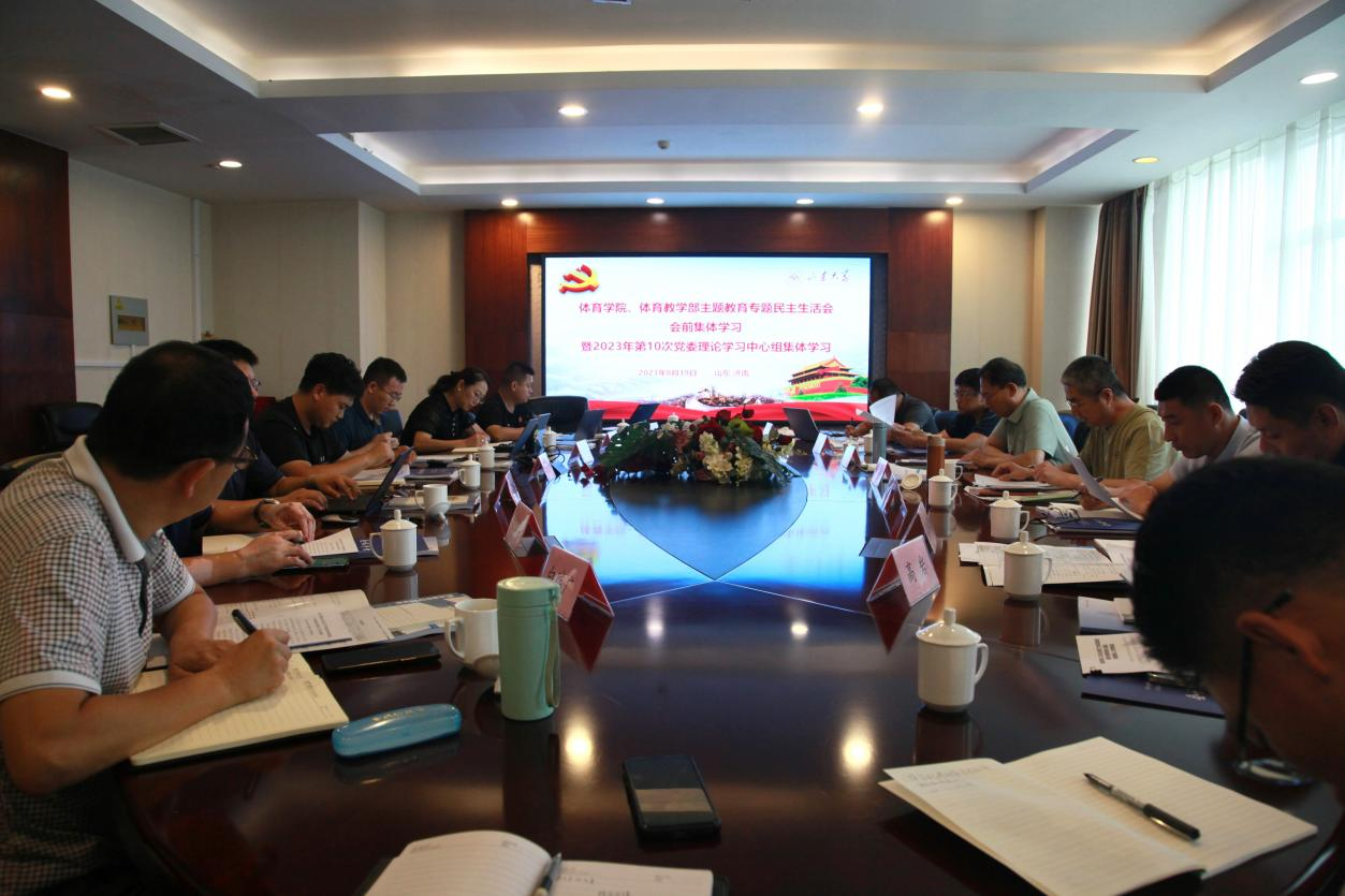 8月19日,环球360会员登录、体育教学部联合举行主题教育专题民主生活会会前集体学习暨2023年第10次党委理论学习中心组集体学习。环球360会员登录党委书记郭学庆主持会议。