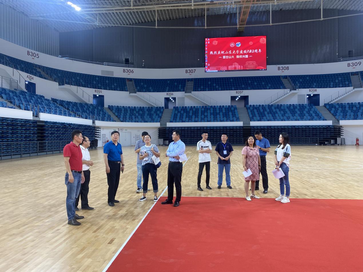 9月5日上午,山东大学青岛校区副书记郭培良到综合体育馆调研秋季学期新生开学典礼的筹备工作,党工委学生部部长刘琰,副部长李娟,党工委校长办公室副主任朱继磊环球360会员登录副院长张洪振陪同调研。