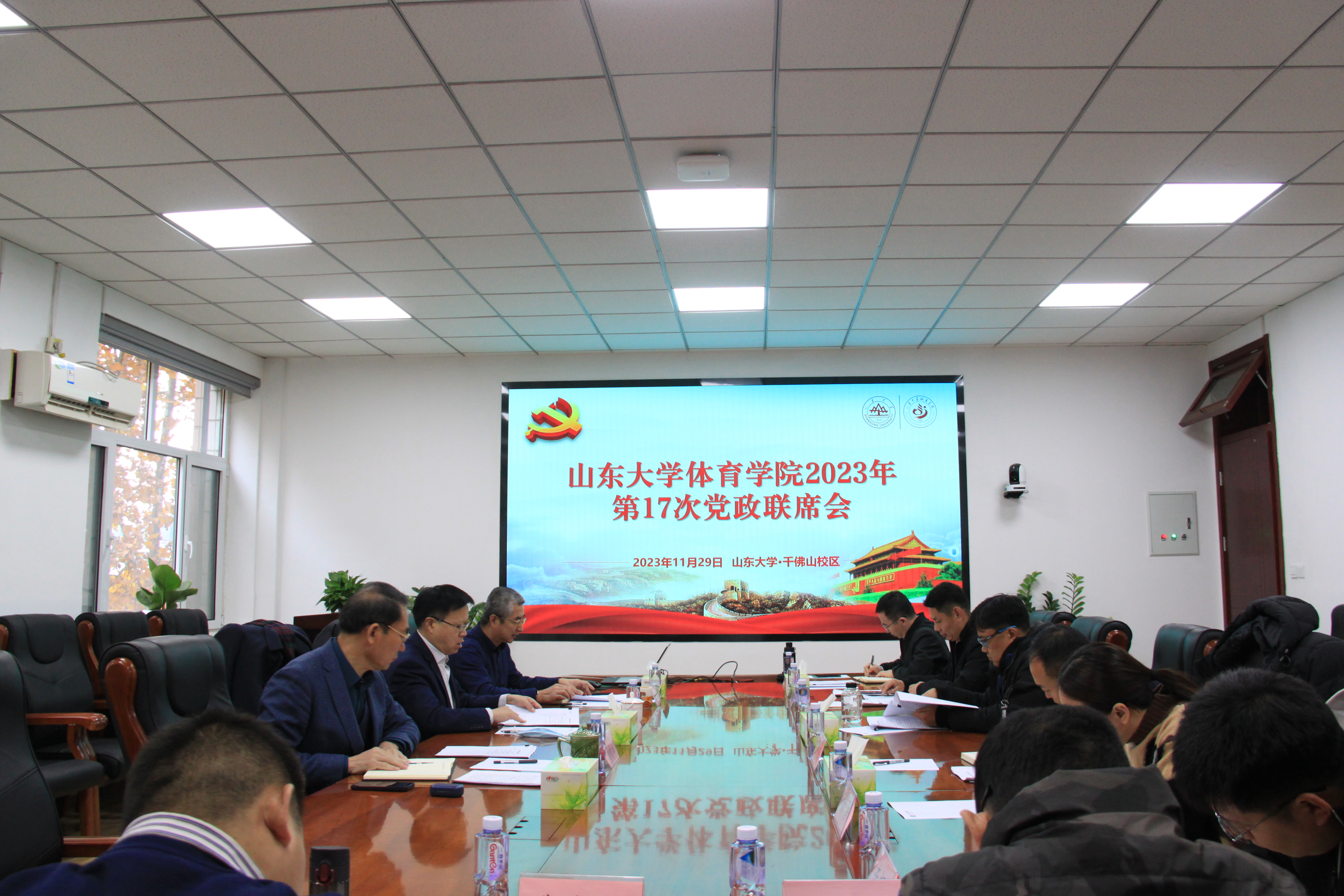 党政联席会上,集体讨论了《环球360会员登录加强和改进教师思想政治和师德师风建设工作方案》执行和落实情况。会议还就山东大学2023年学生体质健康标准测试情况、山东大学-国家体育总局体育科学研究所战略合作协议、山东大学“冠军学堂”建设思路、“体育与健康”微专业建设等事项进行了研究讨论。